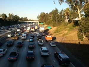 Instead of getting off where I needed to transfer to take Bus #2, I decided to get off half a mile before my stop, right in front of my favorite donut shop. The donut shop wasn’t too far from work but it was not a short walk either. I had plenty of time so I decided that instead of catching Bus #2, I would get a donut and walk to the office. Along the way, I crossed one of the streets that overlooked the freeway. It’s one thing to sit in traffic, but it’s another to see how far it extends. Or not see.